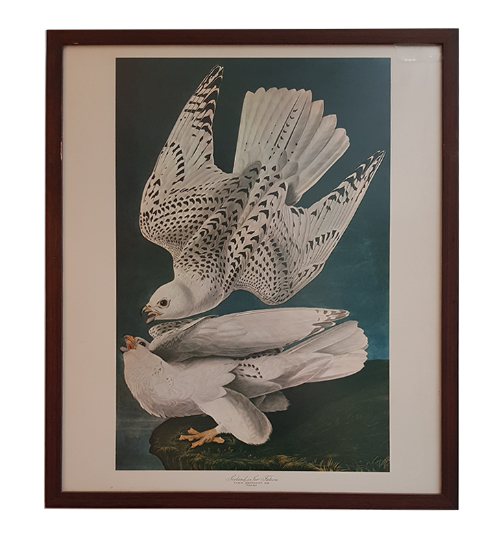 John James Audubon (1785–1851) beeldde in The Birds of America (1827–1838) de IJslandse valk (Falco islandicus) af. Deze reproductie toont zijn kenmerkende precisie en dramatische compositie, waarmee hij natuurhistorie en kunst verenigde.