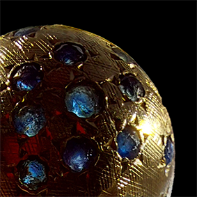 Gouden ring 18 krt met 15 saffiertjes – klassiek en verfijnd vintage sieraad.