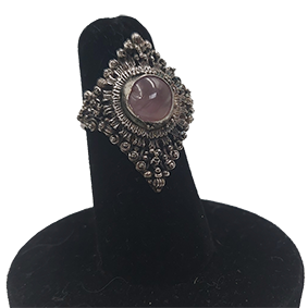 Fraai ontworpen vintage zilveren ring met paarse amethist: tijdloze strak ontwerp.