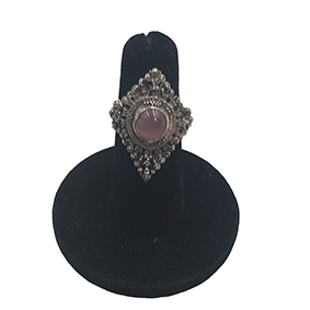 Zilveren ring met roze kwarts – verfijnd vintage sieraad met zachte roze glans en elegante uitstraling.